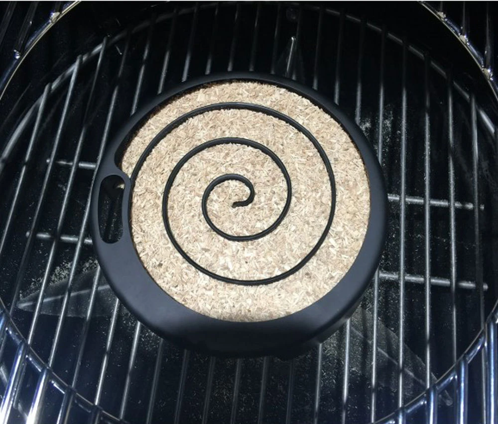 En pocas palabras el polvo de madera para ahumar se quema muy lentamente dentro de la espiral, generando humo durante varias horas.