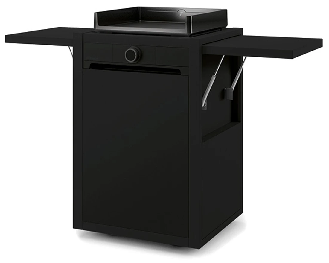 Este carro es el complemento perfecto para trabajar más cómodamente en nuestra plancha. Se adaptan perfectamente las planchas Modern 45 y otras de igual medida. De diseño cerrado, está construido en Acero Esmaltado, incluye puerta frontal con almacenamiento para para la botella de gas y apertura «Push to open» y dos mesas de trabajo laterales abatibles con muelle hidráulico.