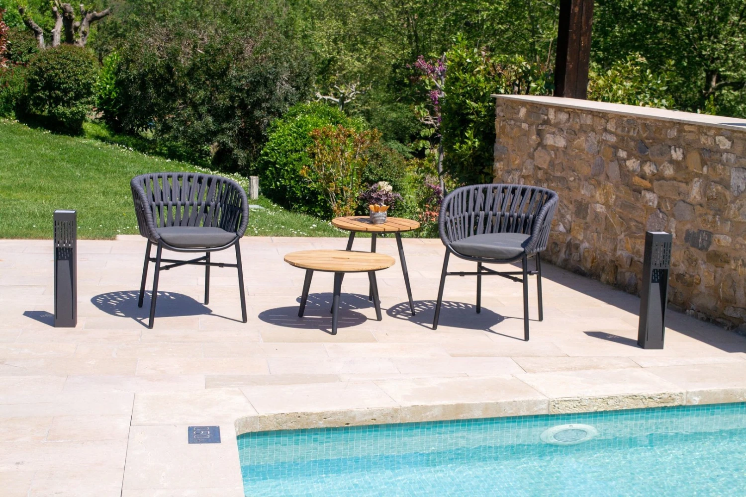 La Mesa Lazio cuenta con un acabado a base de pigmentación y pintura al horno texturizada. Además, tiene un diseño innovador que permite un óptimo comportamiento en el exterior, por su resistencia, ligereza y antioxidación.