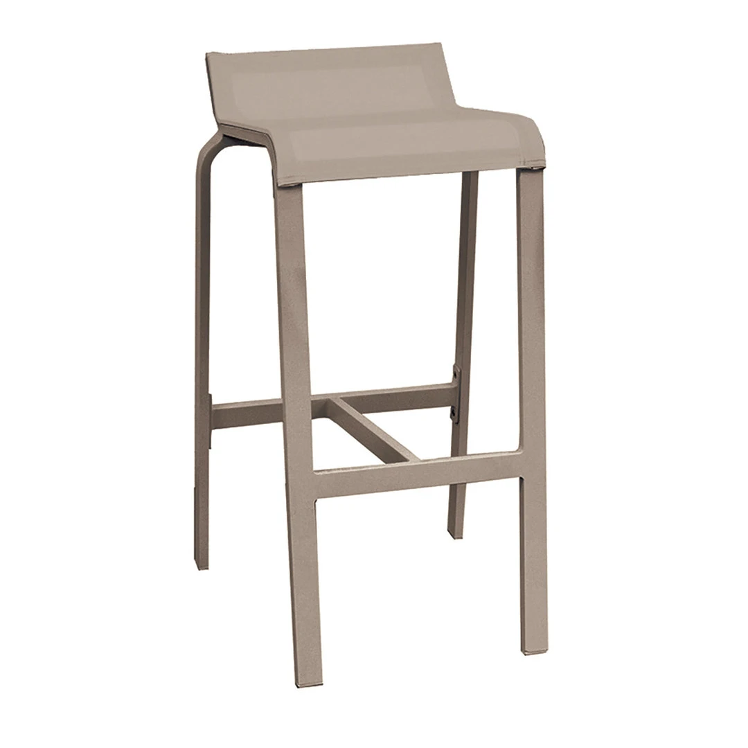 El Taburete bar Luis cuenta con un acabado a base de pigmentación y pintura al horno texturizada. Además, tiene un diseño innovador sin tornillería que permite un óptimo comportamiento en el exterior, por su resistencia, ligereza y antioxidación.